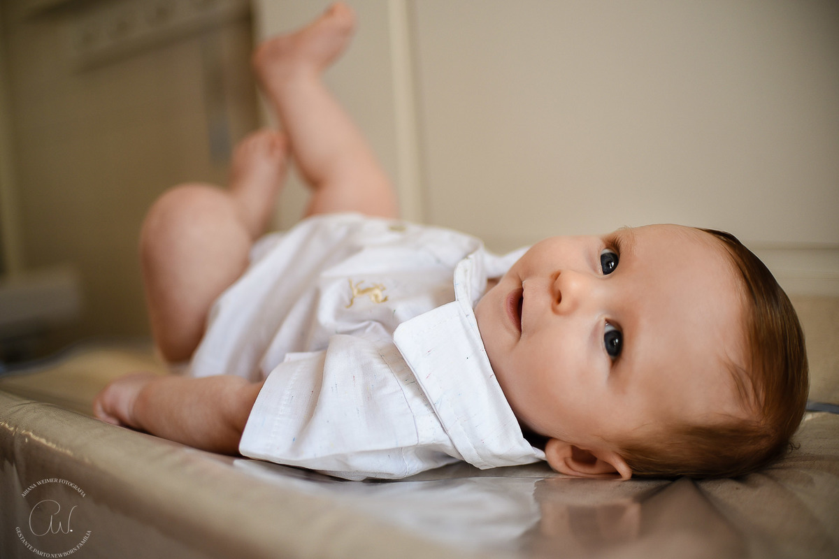 Fez caras e bocas pra tia Ari, aproveitou seu ensaio, tirou um cochi, mamou, brincou com Gatão, papai e mamãe!